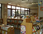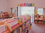 玄関(げんかん)を入ってまっすぐ進むと児童コーナーがあり、たくさんの本がみんなをまっています。おくには「おはなしのへや」もあります。くつをぬいで、ゆっくりと好きな本が読めます。