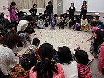 ばばばあちゃんのカルタや王さまカルタ、ぐりとぐらのカルタなど、6しゅるいのカルタをまぜて、子どもたち50人でいっせいに遊びました。