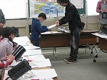 はさみやセロハンテープを使って、プラネタリウムを作りました。へやを暗くしてかべにうつすと、きれいな星空が見えました。さいごに、先生から修了証(しゅうりょうしょう)をうけとりました。