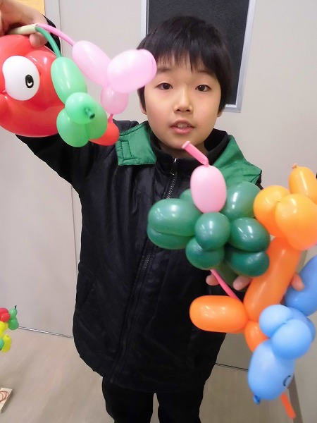 平成29年3月18日(土曜日)、なんよう図書館で「バルーンアートを楽しもう」を行いました。 早瀬進(はやせすすむ)先生におしえてもらって、犬と花のバルーンアートをつくりました。とちゅうで、バルーンがわれてびっくりする子もいましたが、みんな上手にかんせいさせていました。また、さいごに先生が、バルーンで作ったたくさんのおみやげをくださり、みんなとてもうれしそうでした。