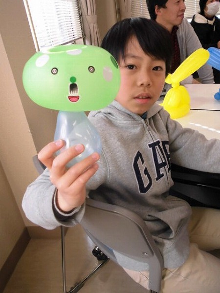 なんよう図書館では、平成30年3月10日(土よう日)に「バルーンアートを楽しもう!」をおこないました。子どもも大人もふくめて、25名の方が来てくれました。早瀬進(はやせすすむ)先生に教えてもらって、みんなでうさぎとキノコをつくりました。早瀬先生のお話がおもしろく、笑顔いっぱいの楽しい会になりました。最後にバルーンでつくったプレゼントもたくさんもらって、みんなうれしそうでした。