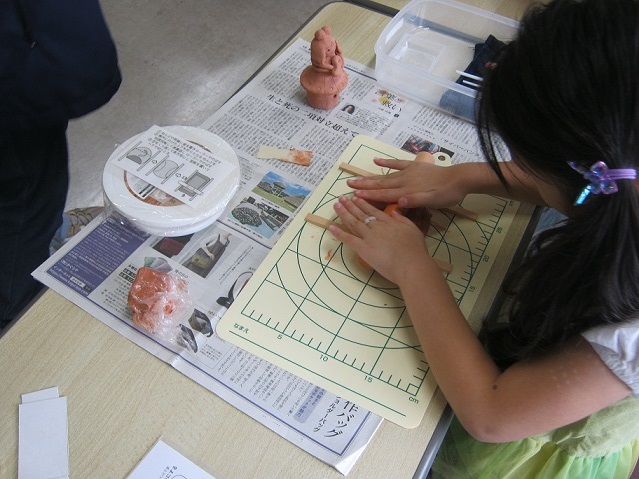 夏休みの宿題おうえんとして開催しました。ハニワや古墳の歴史について勉強した後に色々な形のハニワ作りにちょうせんしました。