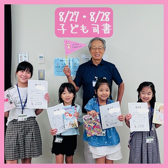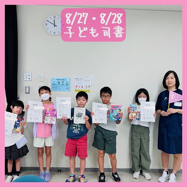 今年も小学1年から6年まで、20人の子どもたちが「子ども司書」になりました。カウンター体験でドキドキしたり、いつもは入れない点字文庫や書庫見学をしたり、本にビニールをかけたりしました。