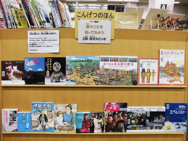 今回は、2類・歴史(れきし)などの本です。「2類ってなに?」と思ったあなた、としょかんのひみつ「本のならびかた」も見てみてね。