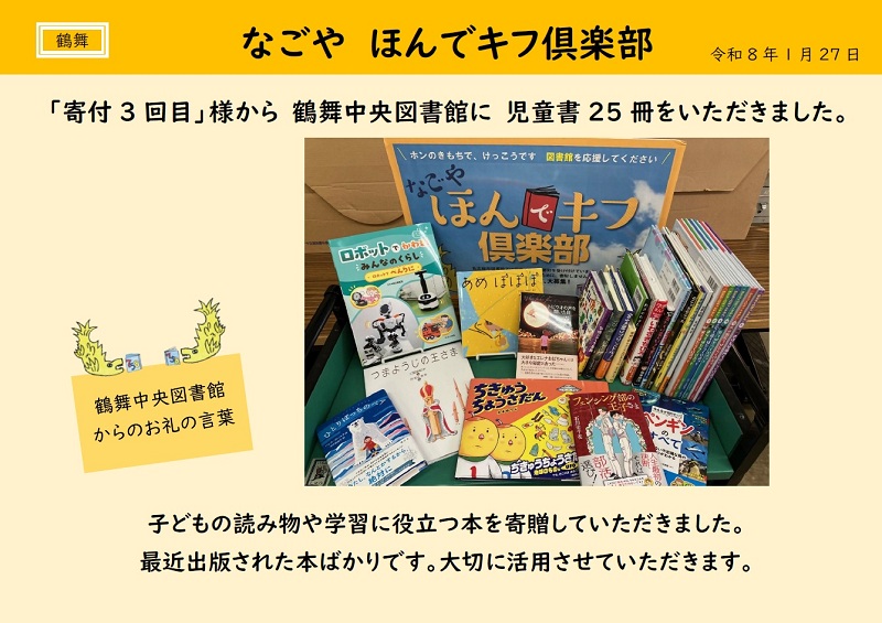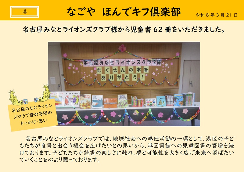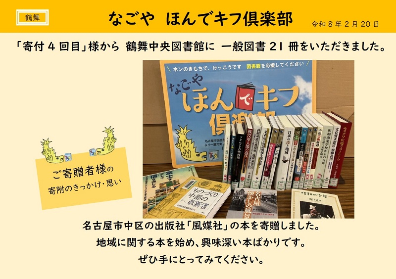 「なごやほんでキフ倶楽部」を通じて、本や物品を寄贈いただきましたみなさまをご紹介します。(掲載に同意された方のみ)