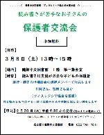 文章を読む・文字を書くのにひどく時間がかかる、漢字がなかなか覚えられないなど、読み書きに困難を抱えるお子さんをもつ保護者向けの交流会です。