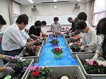 地域で、洋ランやシクラメンを栽培・販売している有限会社 雨宮農園の代表を講師にお招きして、シクラメンの種類・品種改良、アレンジのポイント、手入れのコツや肥料の有効な使い方などの座学と寄せ植え体験をしました。