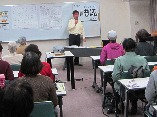 平成28年3月4日(金曜日)に中川図書館では、60歳以上の方を対象とした「長寿イキイキ音読教室」を行いました。多くの方が参加され、全員で一緒に声を出して楽しく音読を体験しました。
