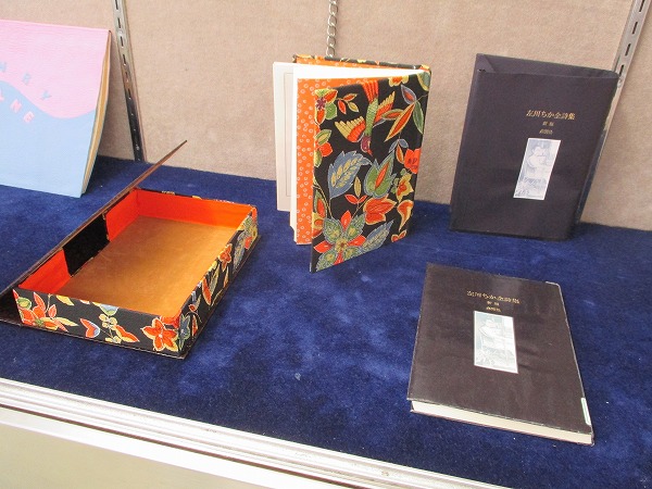 千種図書館では、元図書館司書の飯田治代さんのルリユール作品と植物画の展示をしています。大切な本を製本・装丁しなおし、さらに素敵な一冊にした作品の数々をお楽しみください。