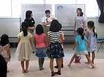 名城大学のお兄さん、お姉さんから「Good night , gorilla」「Dear zoo」の2冊の絵本を読んでもらったあと、動物のジェスチャークイズをして遊びました。
