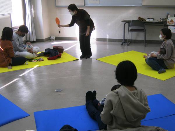わらべうたの本の展示 富田図書館では、2022年12月11日(日曜日)に「親子であそぼう-わらべうた講座-」を開催しました。 1回目は0歳児向け、2回目は1、2歳向けに講座を行いました。 子どもに読書への関心をもってもらうためのきっかけとして、手遊びやハンカチを使ったわらべうたを体験し、楽しく学びました。 身体全体ででリズムをとっています。 ハンカチを使ったわらべうたに興味津々