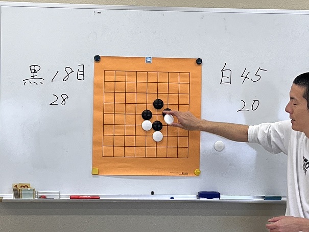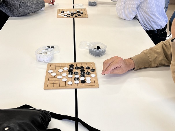 「お互い石の取り合いをしてみましょう。」それぞれの組ごとに先生がまわり、アドバイスをもらいながら進めていきました。