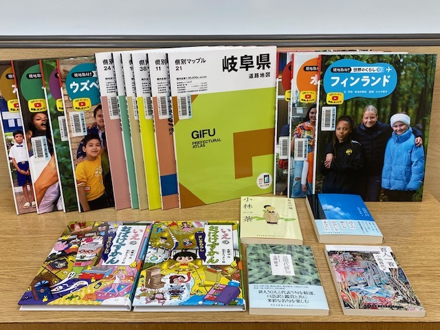 楠図書館に、道路地図や詩歌の本、子どもたちの学習に役立つ「世界のくらし」の本などをいただきました。