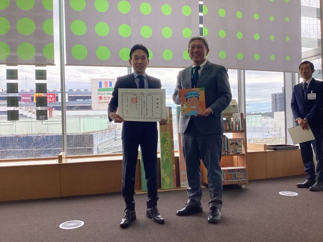 2026年3月19日(木曜日)に徳重図書館で行われた贈呈式では、鶴舞中央図書館館長より歯科医師会会長栗山俊久氏へと感謝状が贈られました。