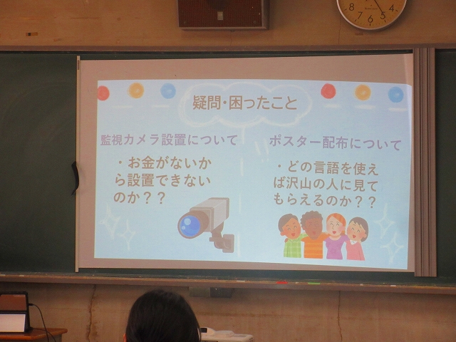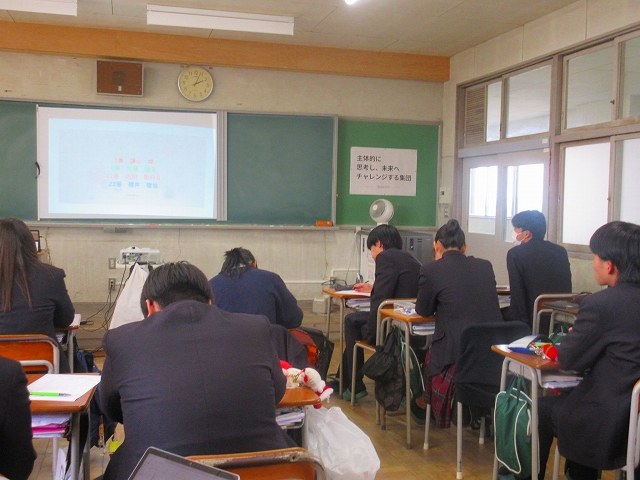生徒たちはプロジエクターを使ってわかりやすく自分たちの考えを発表していました。