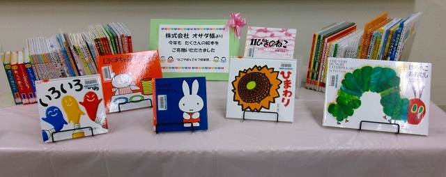 中川図書館では、2026年3月26日(木曜日)に株式会社オサダ様よりご寄贈いただいた絵本の感謝状贈呈式を行いました。 ご寄贈いただきました絵本には、「☆子どもたちに夢と笑顔を☆」という株式会社オサダ様よりのメッセージが付いております。 大切に使わせていただきます。ご寄贈ありがとうございました。 中川図書館集会室にて感謝状贈呈式を行いました。 今年度、このような絵本を79冊いただきました。 「なごやほんでキフ倶楽部」について詳しくは、こちらをごらんください。