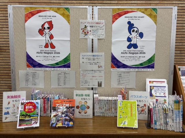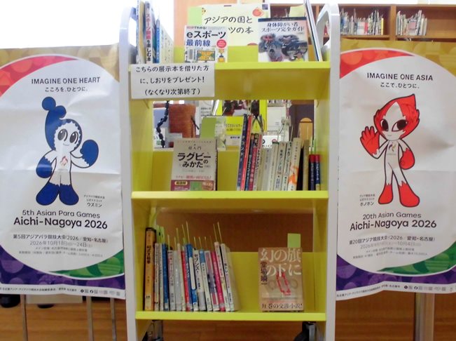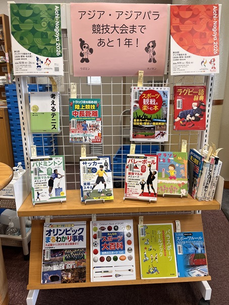 実施競技や参加国・地域に関する本、パラスポーツに関する本など、アジア・アジアパラ競技大会が待ち遠しくなる資料の展示を名古屋市図書館全館で実施します。