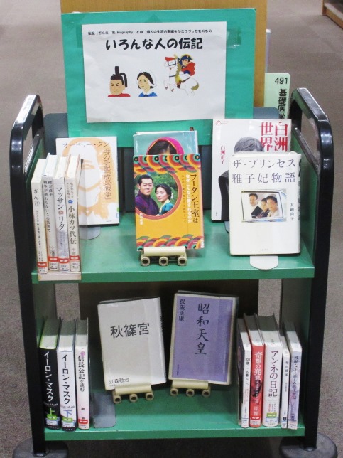 港図書館では小展示コーナーで「いろんな人の伝記」展示を行っています。
